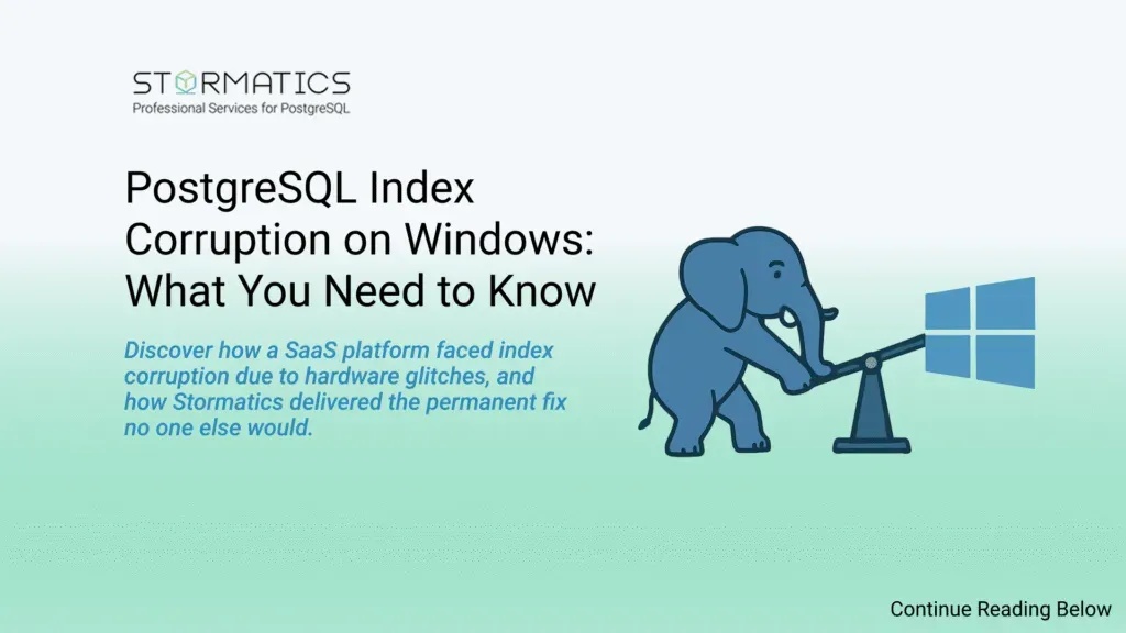 PostgreSQL index corruption on Windows can silently bring your systems to a halt. A leading video analytics SaaS platform, built for real-time alerting and operational insights, began facing critical performance issues as it scaled. With rising data volumes and a PostgreSQL database running on Windows infrastructure, the system became increasingly unstable. Even brief outages led to lost revenue and dissatisfied customers, directly threatening business continuity.